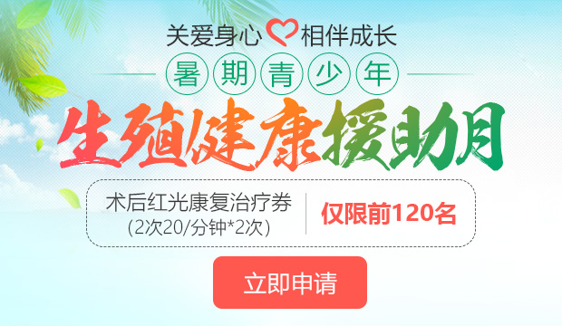 1,暑期青少年生殖健康援助月,每一位青少年包皮、包茎患者进行“微雕无痛包皮整形美容术”手术费限价仅需 199元(原价:599元 手术费援助劵400元)(不含术中材料、术前检查、术后消炎换药等)